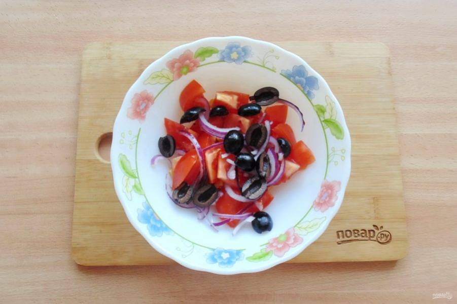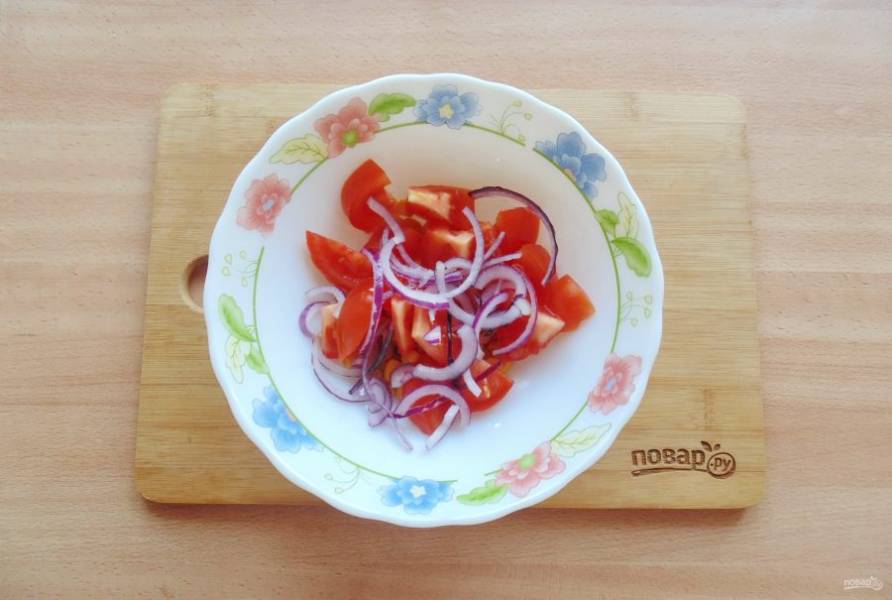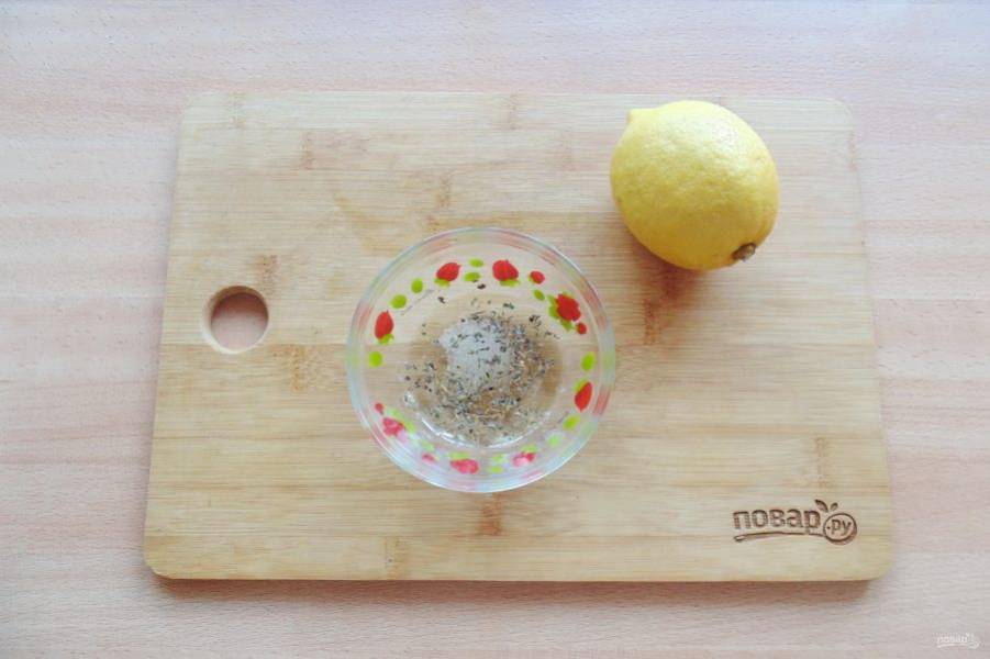 Приготовьте заправку для салата. В мисочке перемешайте растительное масло, соль, сушеный базилик, черный молотый перец и лимонный сок.