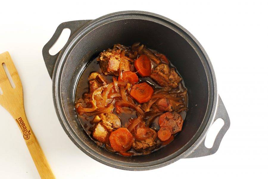 Налейте воду (она должна полностью покрыть кролика) и тушите под крышкой на небольшом огне в течение 1,5 часов.