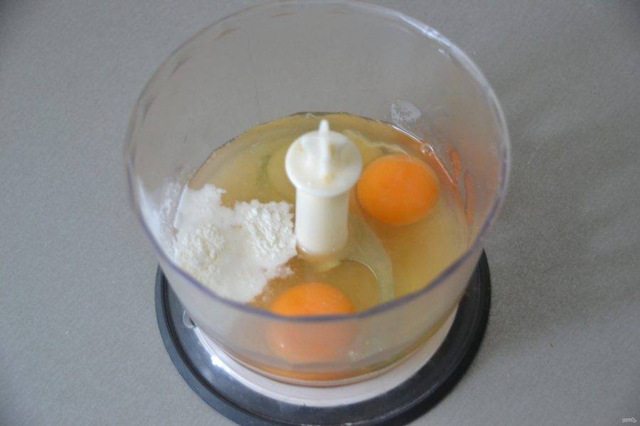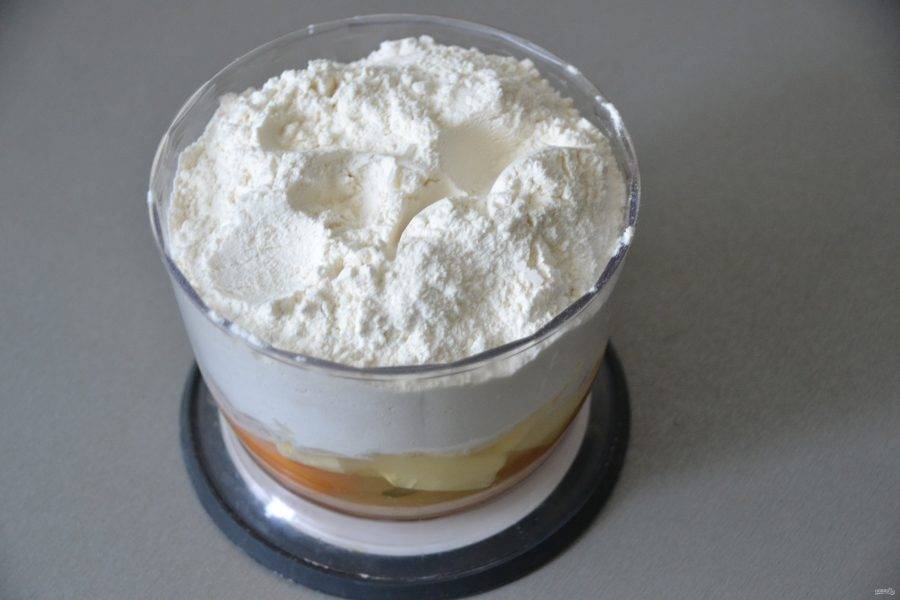 Добавьте в чашу блендера (миксера) просеянную муку.