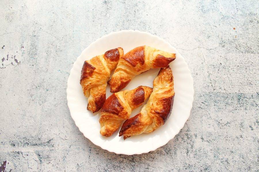 Выпекайте круассаны в горячей духовке и выпекайте при температуре 180 градусов в течение 20-25 минут до готовности. Спустя время достаньте круассаны из духовки и остудите.