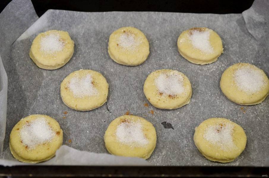 Тесто раскатайте толщиной 1 см. Вырубите кружки.