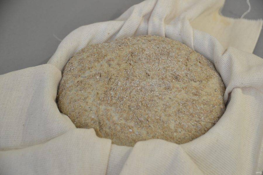 Концами салфетку укройте хлеб. В таком виде оставьте его в теплом месте на 1 час.