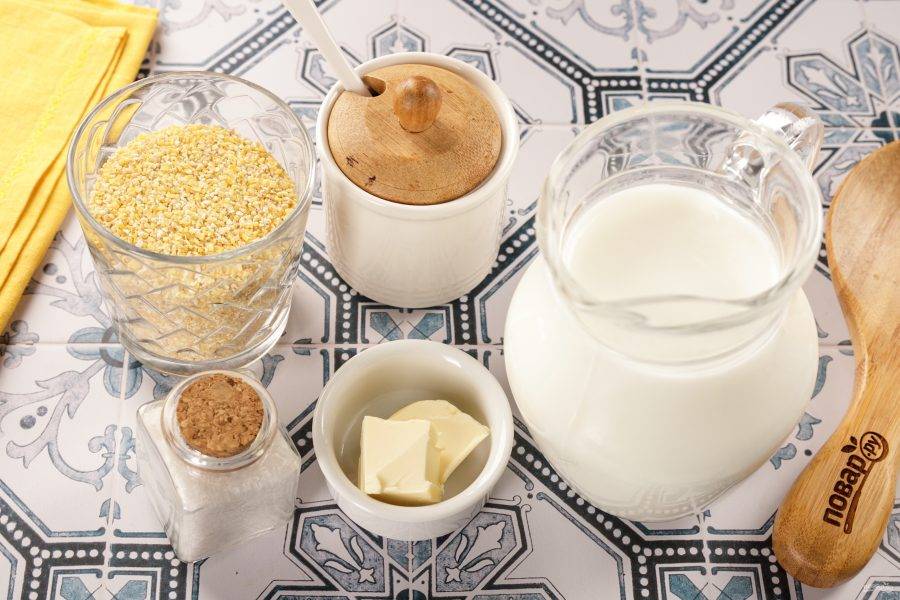 Подготовьте все ингредиенты по списку. Молоко можете брать любой, предпочтительной для вас жирности, а можете разбавить его водой в соотношении 50:50.