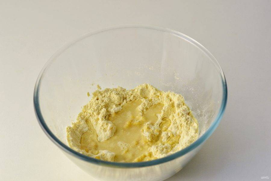 Влейте масло, аккуратно размешайте вилочкой.