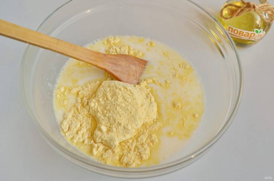 3. Добавьте яйцо, масло растительное и снова хорошо перемешайте.