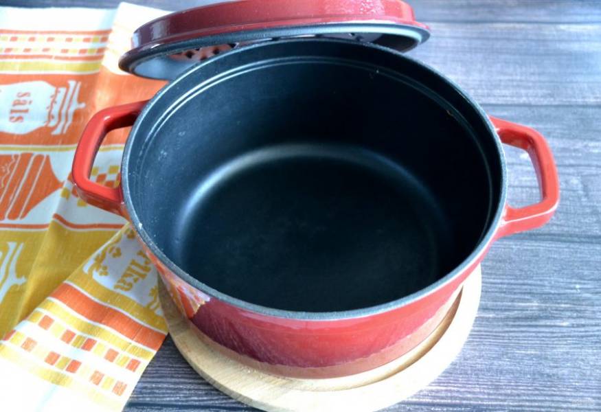 Подготовьте форму для запекания. Лучше всего взять чугунную кастрюлю. Если нет чугунной кастрюли, можно выпекать в тяжелой сковороде. Поместите кастрюлю в холодную духовку и включите духовку в режиме "верх-низ" на 230 градусов. Нагревайте кастрюлю 30 минут.