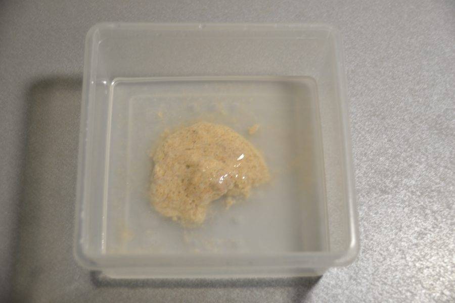 Первым делом освежите закваску, лучше это делать вечером. Отмерьте 10 г ржаной закваски 100%-ной влажности и влейте 45 мл теплой воды.