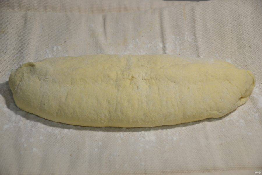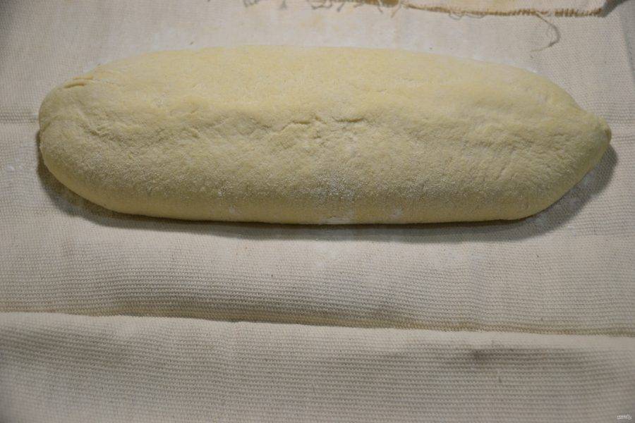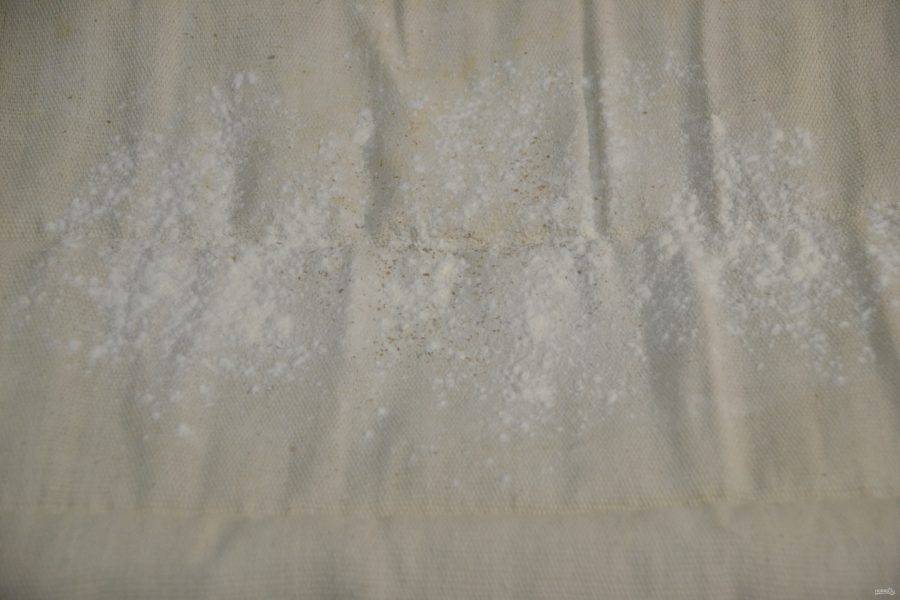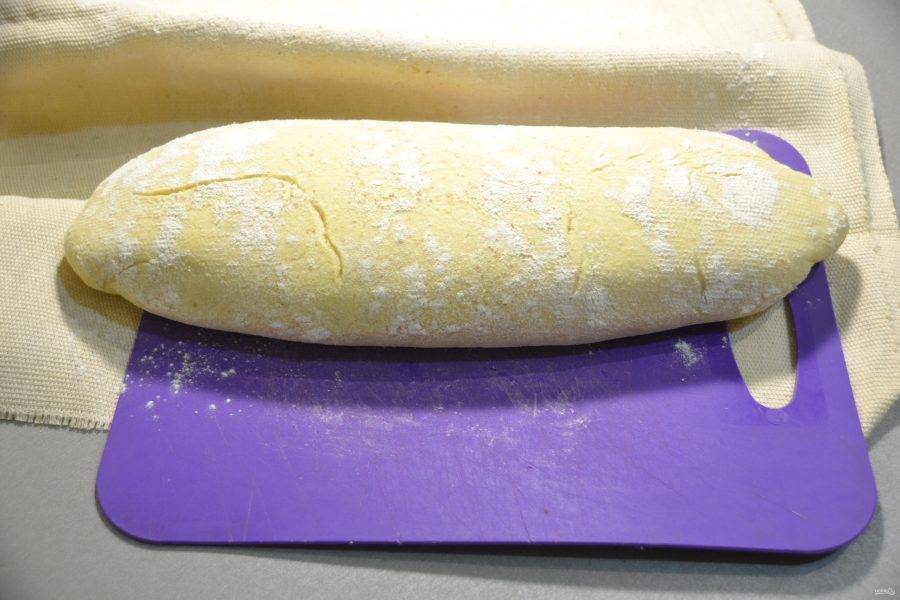 Подготовьте место для расстойки теста, застелите его плотной тканью, присыпьте мукой, можно добавить немного отрубей.