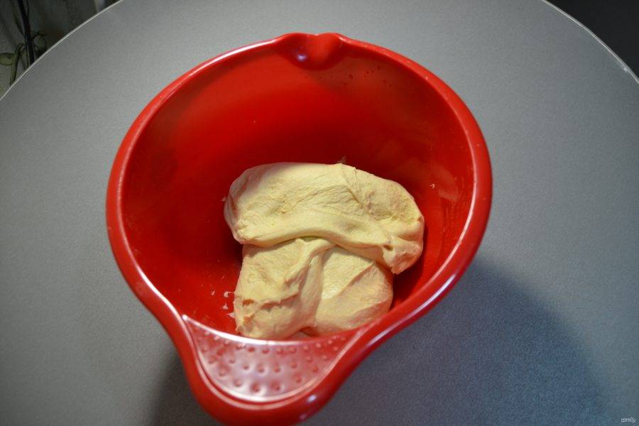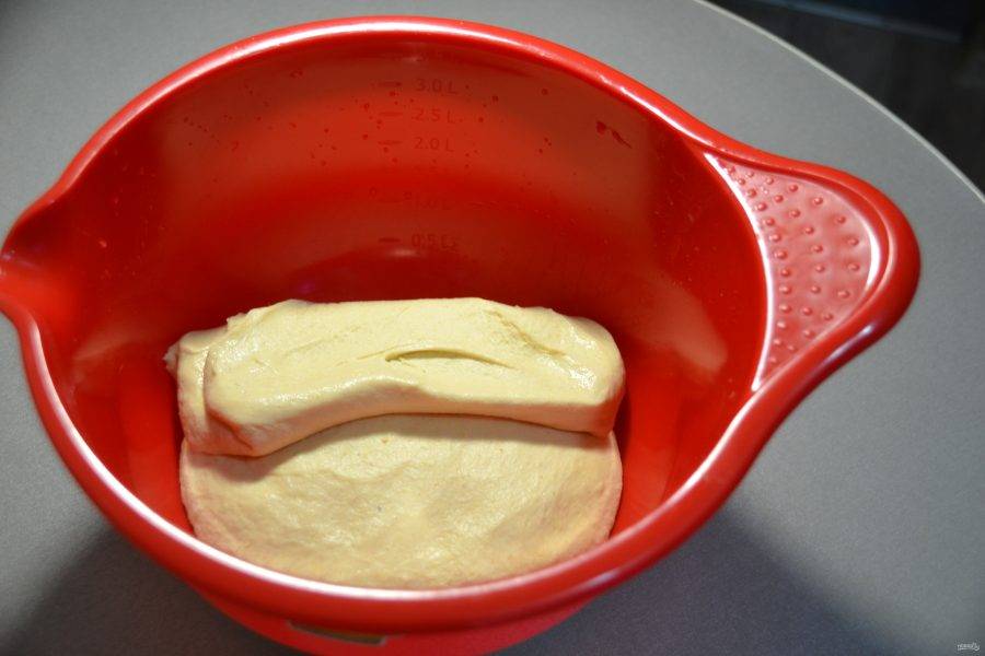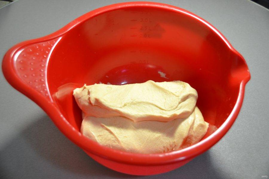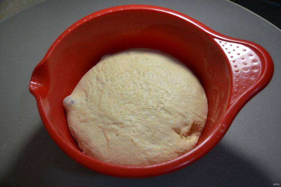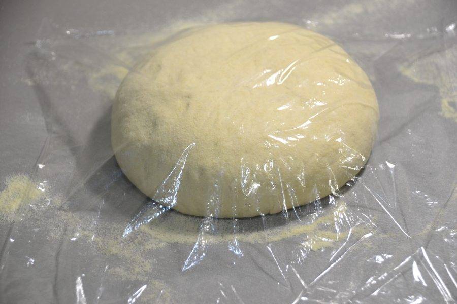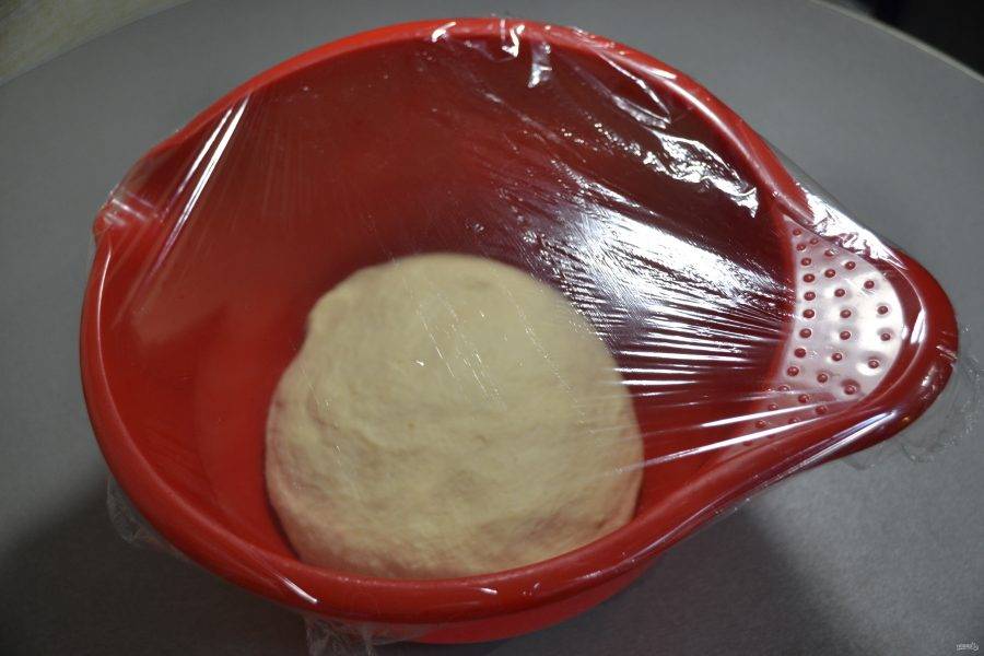 Накройте пищевой пленкой и оставьте в таком виде на предварительную расстойку на 30 минут.