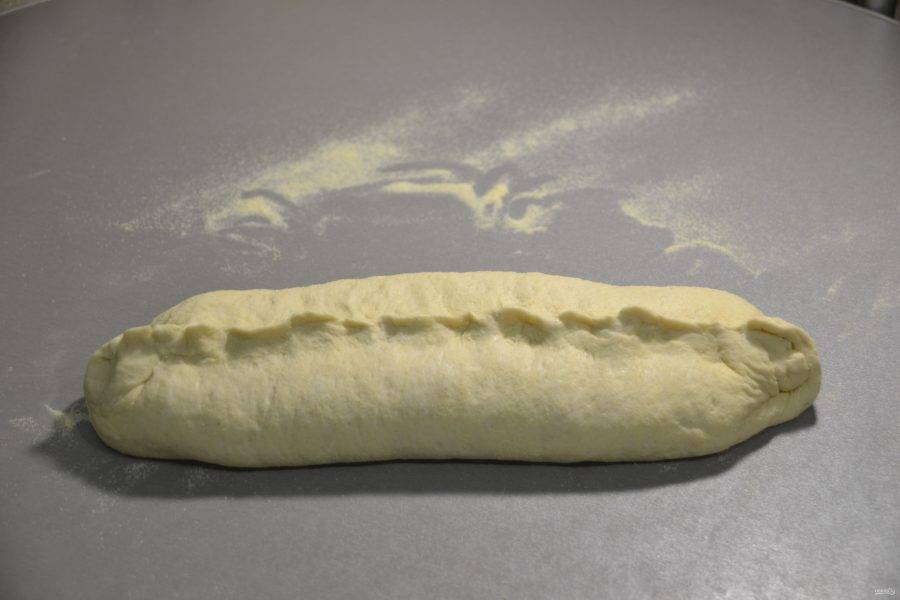 Ребром ладони сделайте пробивку, чтобы тесто не развернулось.