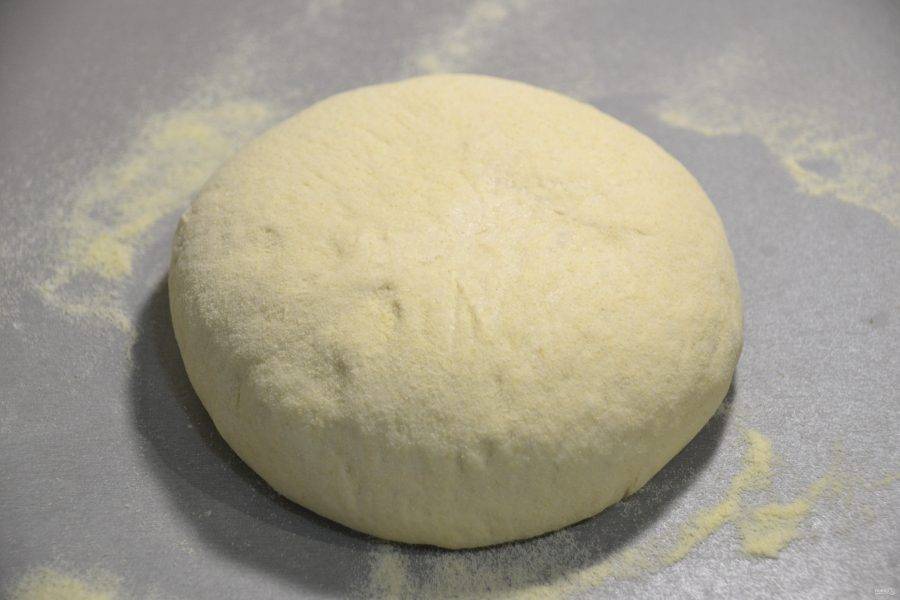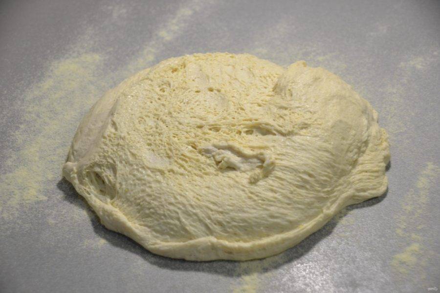 Замесите тесто, вымешивать нужно на рабочей поверхности стола минут 15-20.