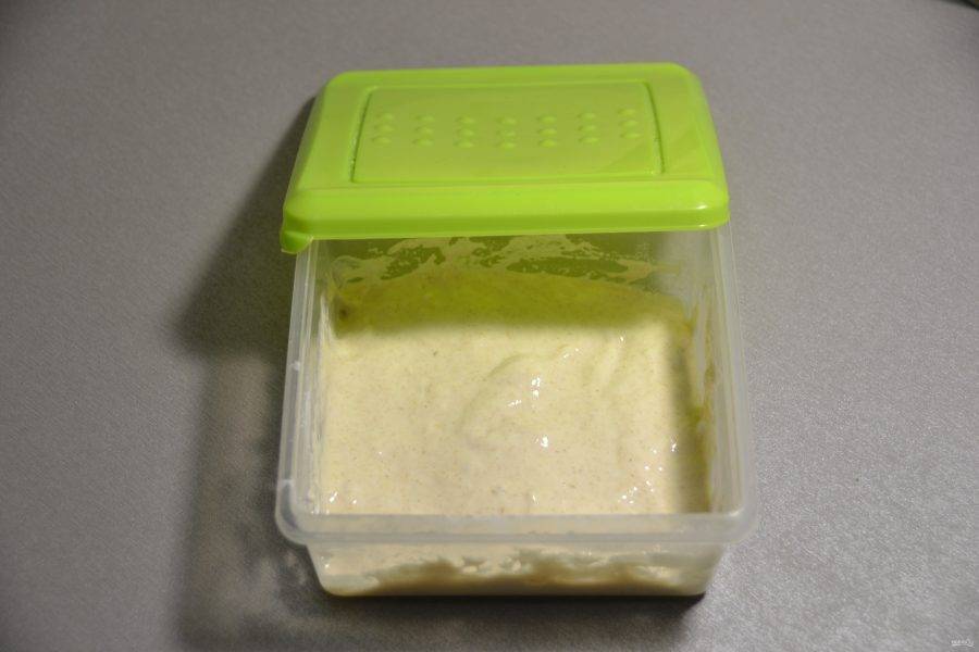 Накройте закваску крышкой или затяните пищевой пленкой, в таком виде она останется при комнатной температуре до утра, то есть на 12 часов.