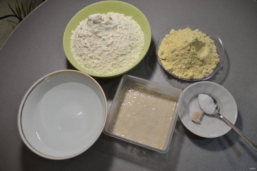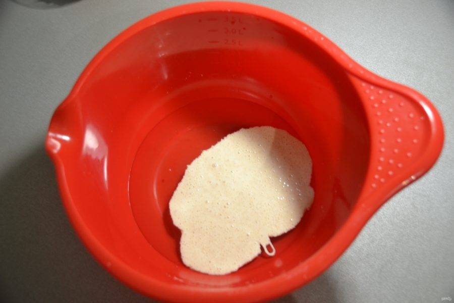 Влейте в миску 290-300 мл воды, добавьте капельку прессованных или сухих дрожжей и 10 г соли.