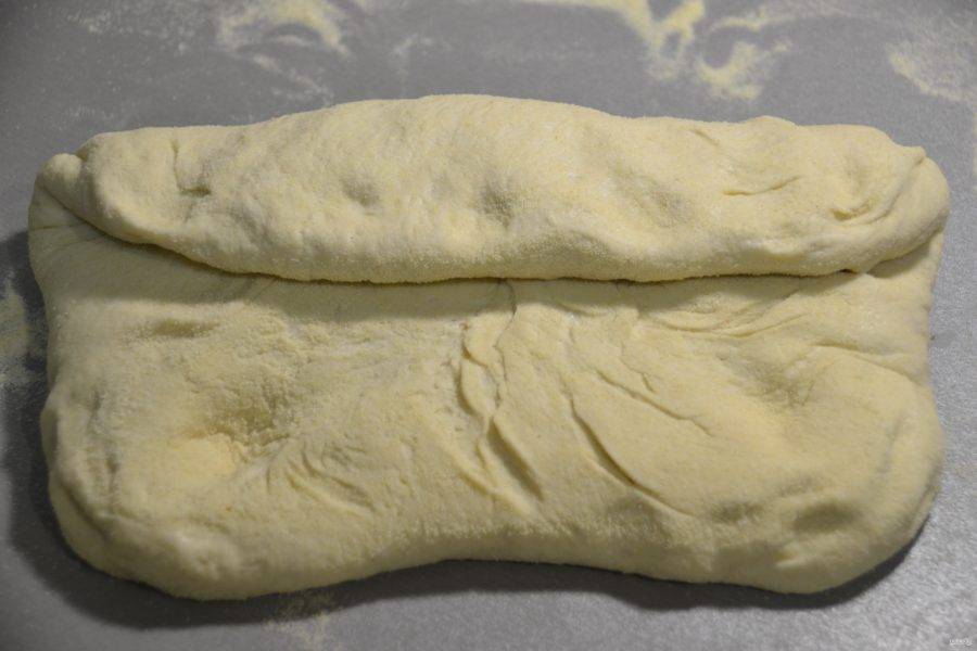 Делаем обминку, как если бы делали "евроконверт" - оттяните одну сторону теста и сложите внутрь.