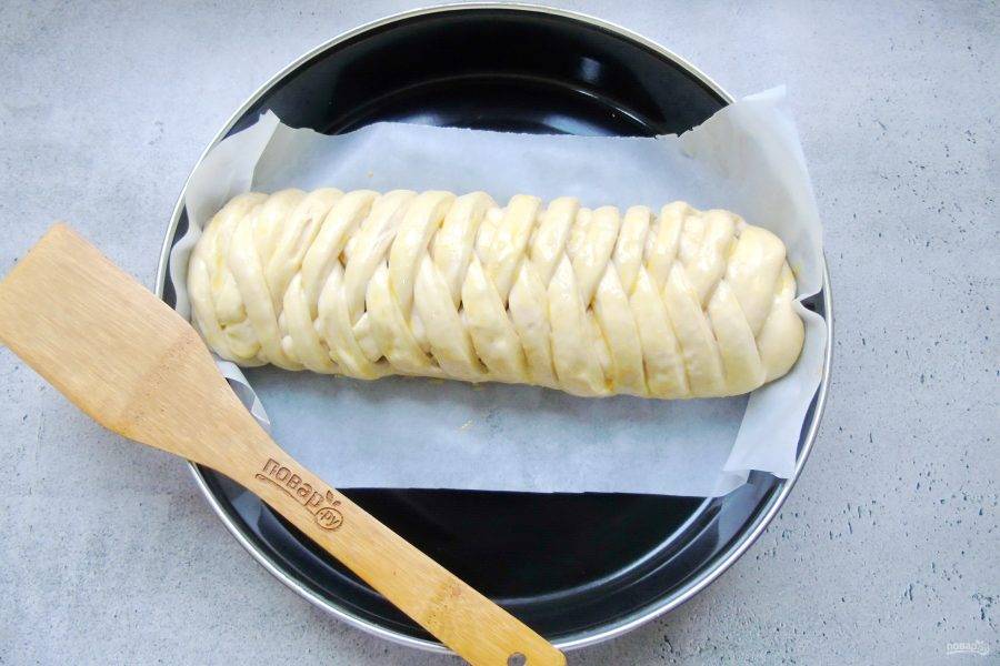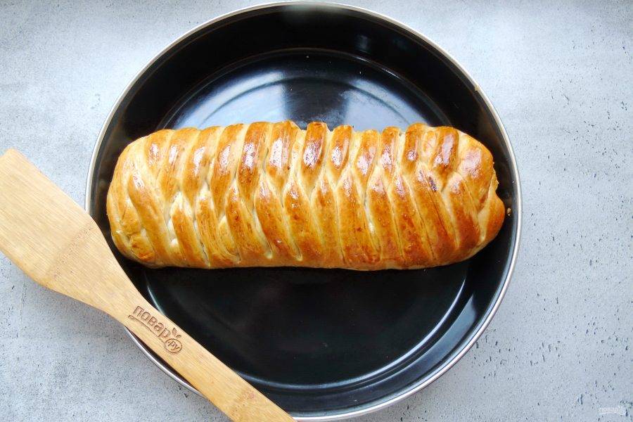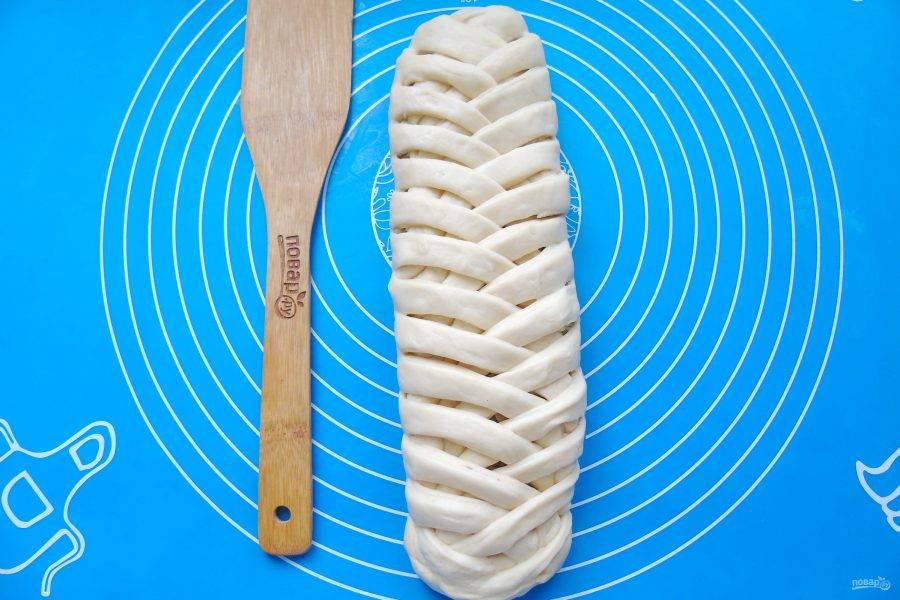 Заплетите тесто косичкой. Вторая кулебяка тоже готова.