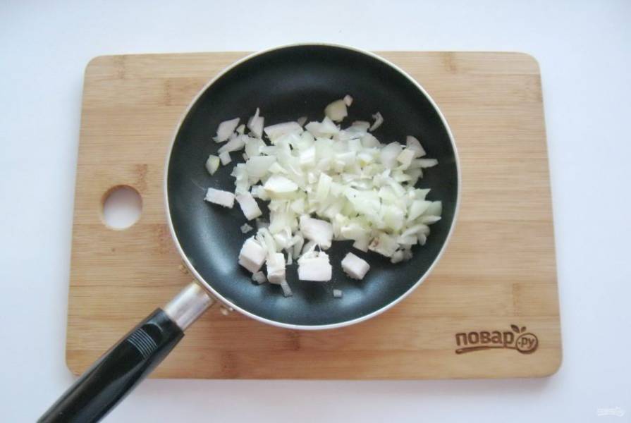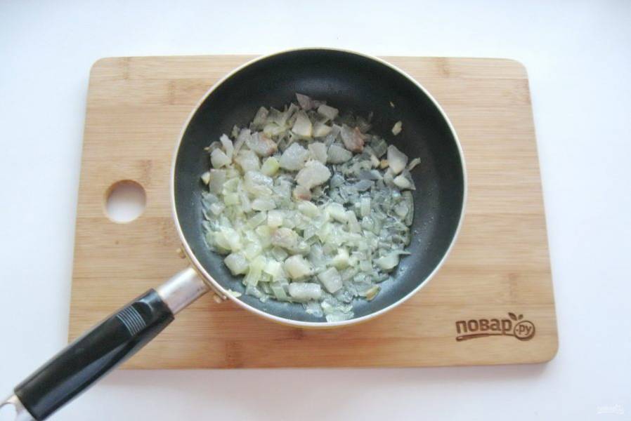 Обжарьте сало с луком в сковороде.