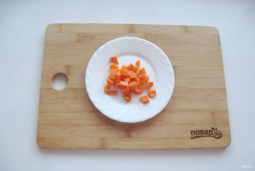 Морковь очистите, помойте и мелко нарежьте. Добавьте в кастрюлю.