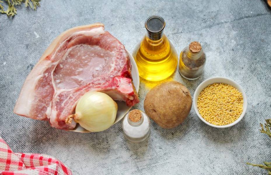 Подготовьте все необходимые ингредиенты для приготовления кулеша "Солдатского".