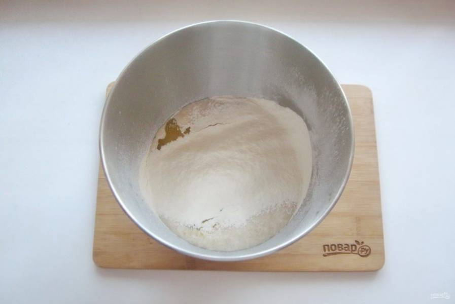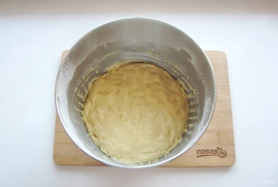 Накройте тесто пищевой пленкой или полотенцем и поставьте в теплое место. Через час-полтора оно увеличится в объеме.