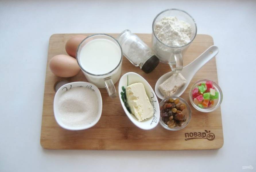 Перемешайте тесто с изюмом и цукатами. Опять поставьте на расстойку накрыв полотенцем.