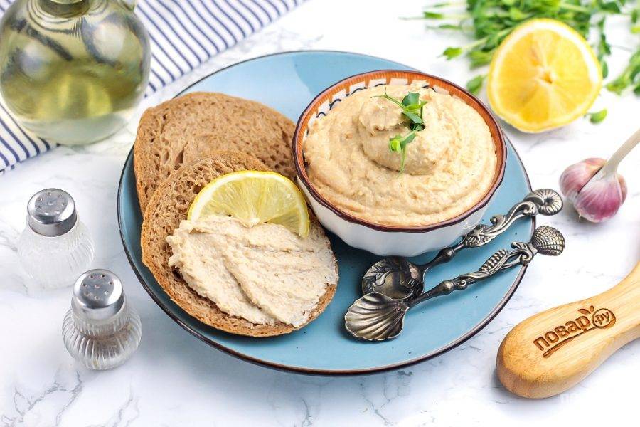 Выложите тахини в пиалу, подайте к столу с хлебом, лавашом, паштетом и т.д. Украсьте свежей зеленью. Приятного вам аппетита!