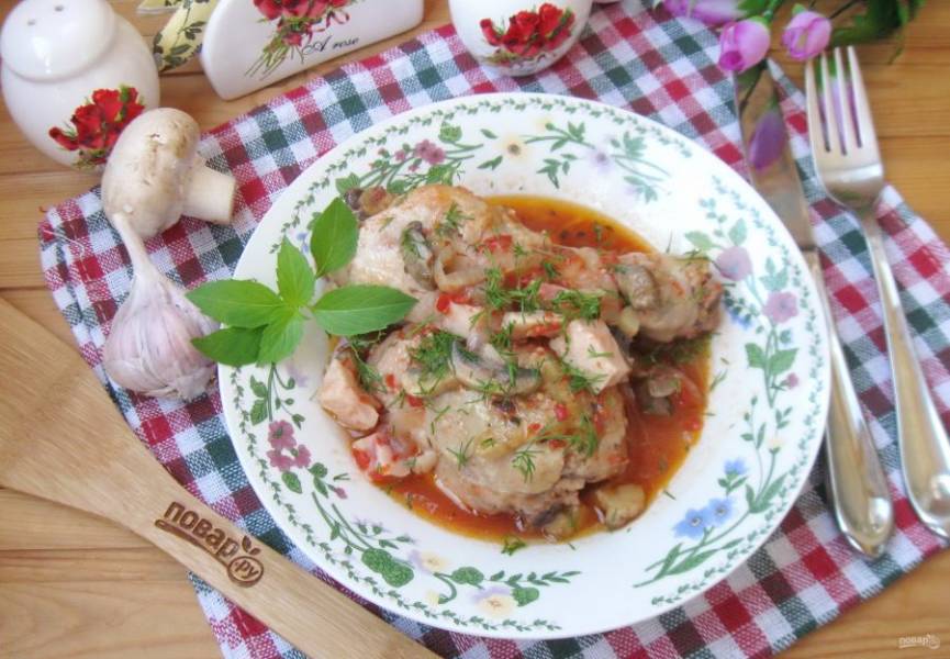 Курица "Алла каччаторе" готова. Подаем с любым гарниром.