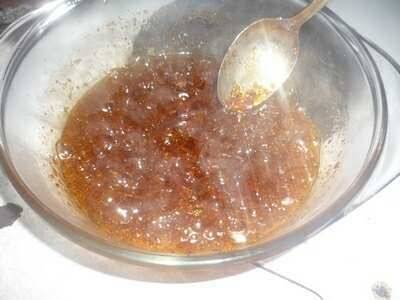 5. Теперь можно приступить к заправке. В небольшой емкости соединить растительное масло и уксус. Поставить на медленный огонь и довести до кипения. Добавить соль и специи по вкусу. Положить немного томатной пасты и еще 2-3 минуты подержать заправку на огне, постоянно помешивая.