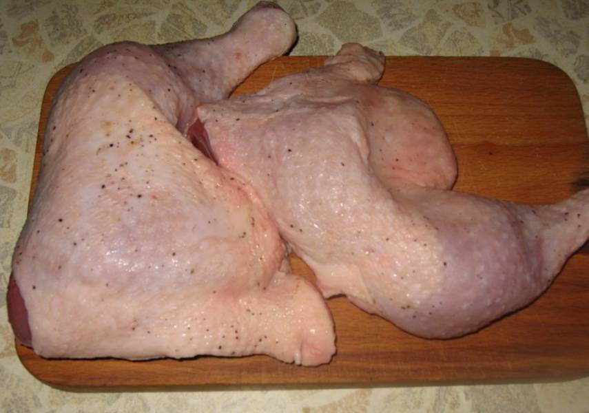 Окорочка промойте, посолите и поперчите.