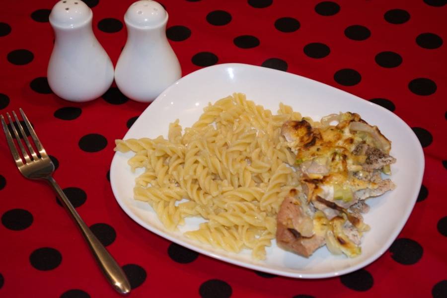 Это блюдо близкое к такому, как "мясо по-французски", только делается из куриного мяса. Мясо птицы получается сочным, вкусным и оригинальным. Я использовала кабачки, вместо привычных помидоров.