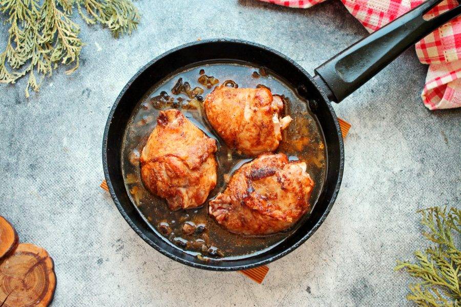 Закройте сковороду крышкой, убавьте огонь до минимального и томите в течение 30-40 минут. Курица "Провансаль" готова.