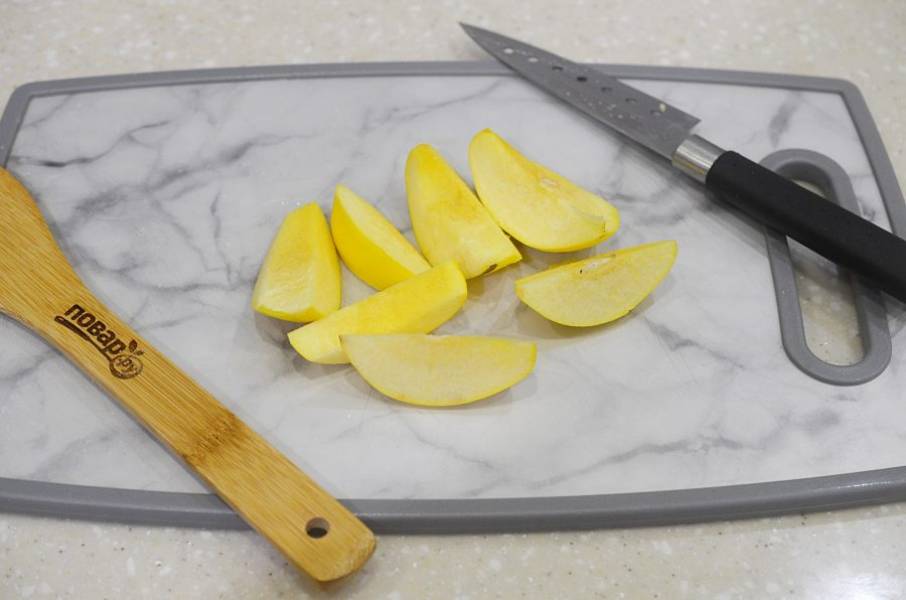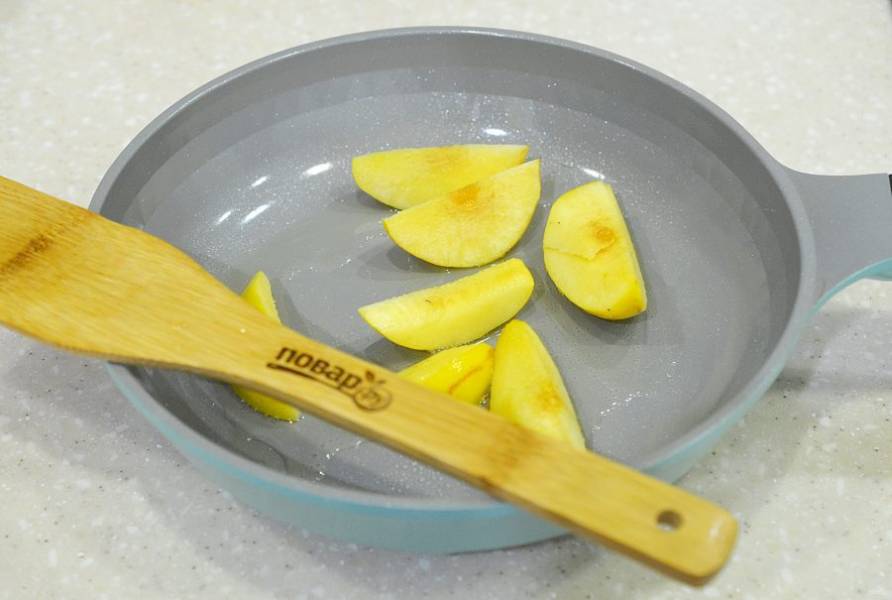 2. Растопите сливочное масло и обжарьте айву в сковороде.