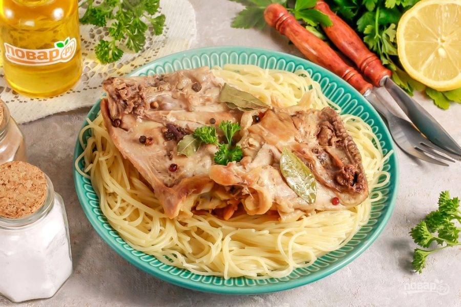 Подайте горячую курицу с любым гарниром по вашему вкусу: макаронами, кашей, картофельным пюре и т.д.