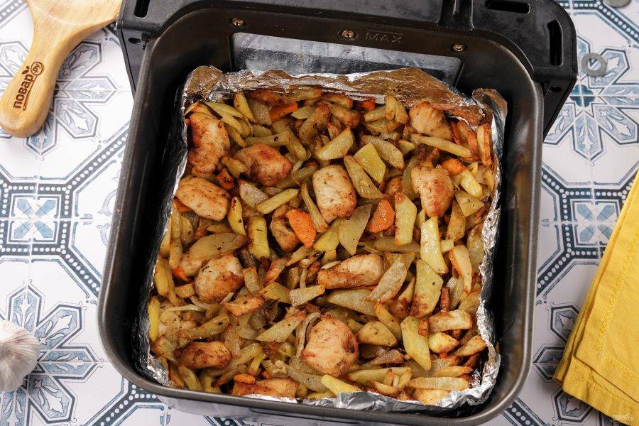 Курица с картошкой в аэрогриле готова. Приятного аппетита!