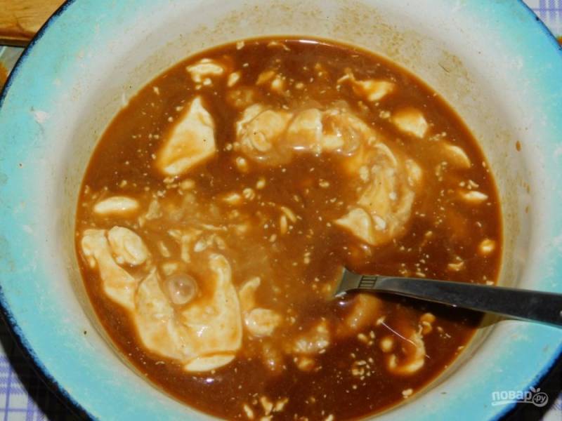 В отдельной посуде смешайте соевый соус, горчицу, сметану, соль и специи.