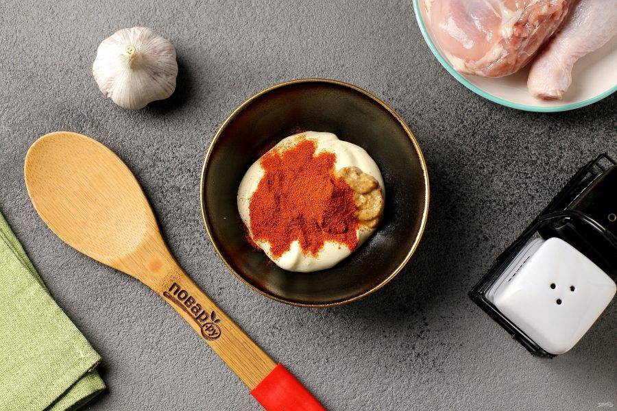 Соедините майонез, горчицу и паприку.