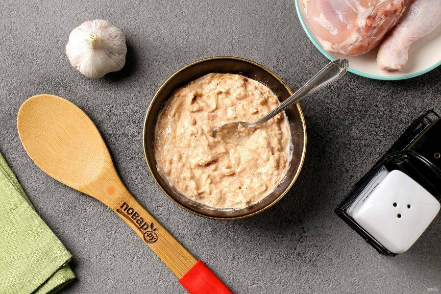 Курица в чесночно-луковом маринаде запечённая в духовке