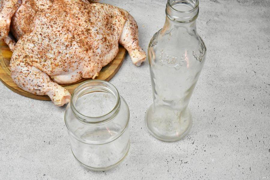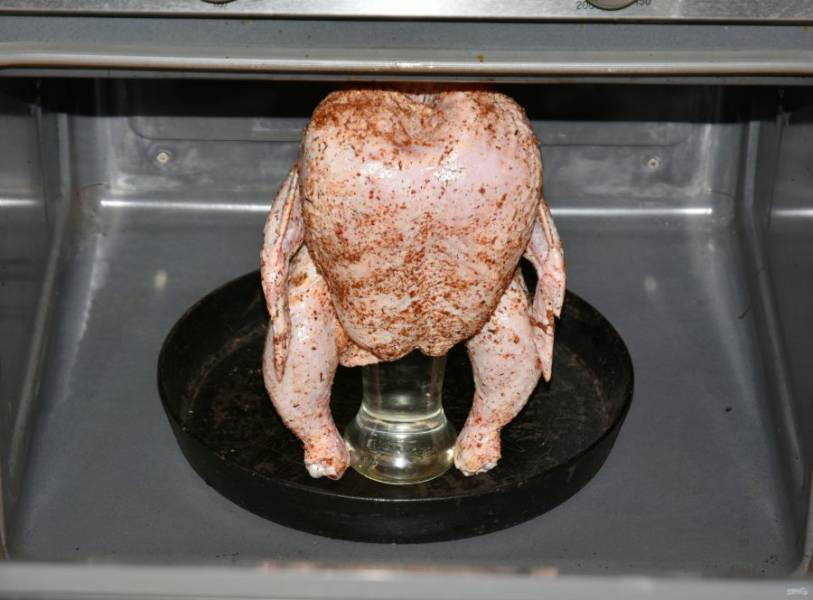 Если у вас нет в наличие специального устройства — ростера, используйте стеклянную банку или бутылку, заполнив емкость водой на 2/3 объема. В воду для ароматизации можно добавить лавровый лист, тимьян, розмарин. Можно взять алюминиевую банку от пива, оставив немного напитка в емкости. Пиво добавит куриному мясу интересный вкус с нотками карамели и хмеля. Если вас смущает печатная этикетка на алюминиевой банке, оберните ее фольгой.