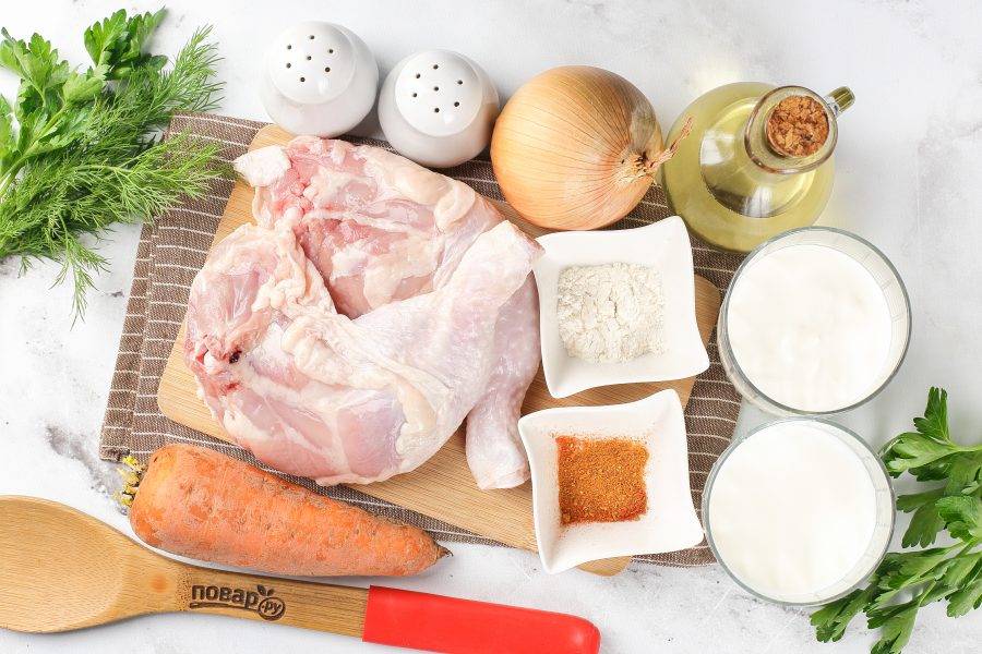 Подготовьте все ингредиенты. Курицу промойте и обсушите.