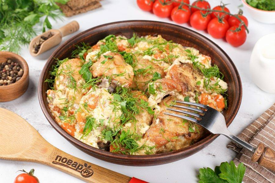 Курица в молочно-сметанном соусе готова. Подавайте к столу.