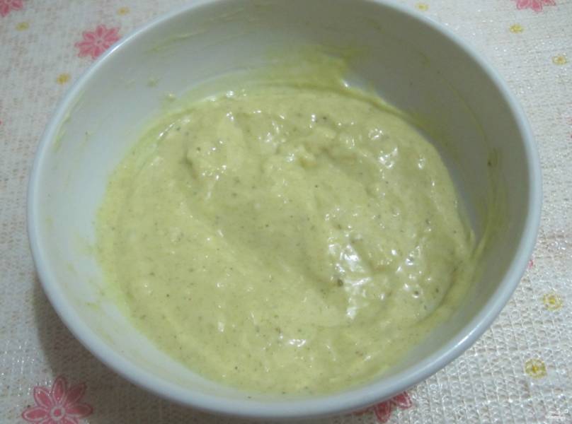 Делаем соус для маринования курицы. Для этого можно использовать майонез, густой пресный йогурт и многое другое. Я использую сметану. Развожу сметану с горчицей, молотым кориандром, паприкой и черным перцем. Тру чеснок на мелкой терке. Все перемешиваю.