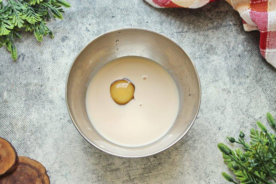 Просейте в миску муку и замешайте однородное тесто по консистенции как кефир.