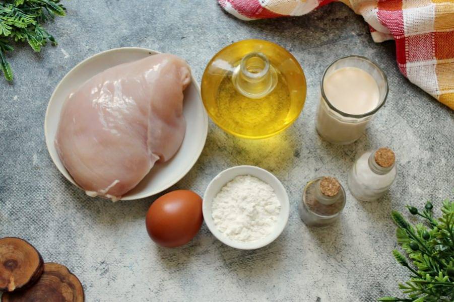 Подготовьте все необходимые ингредиенты для приготовления курицы в тесте.