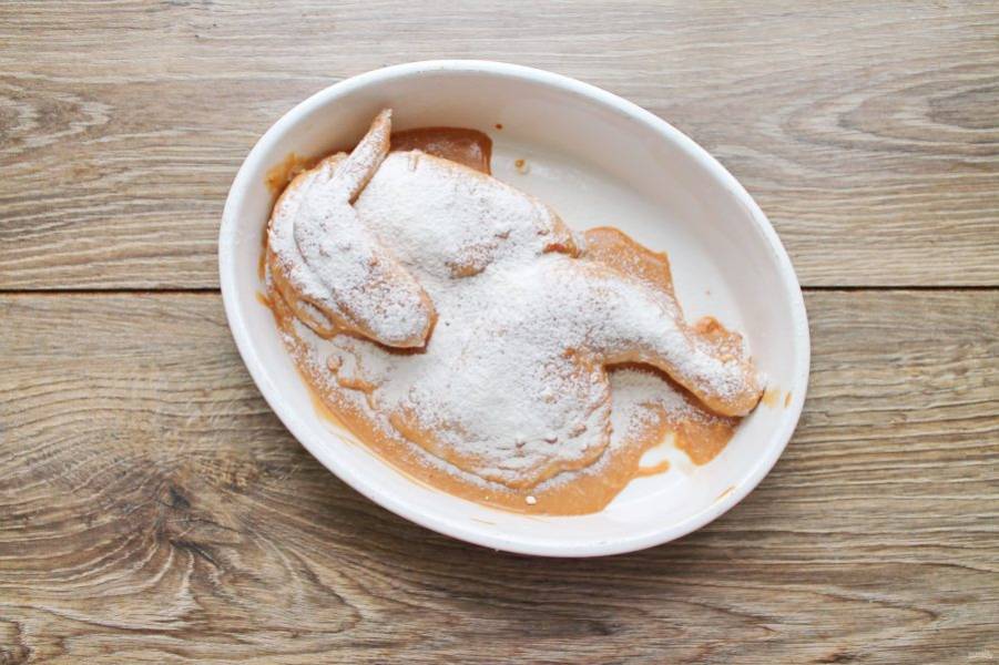 Посыпьте сверху курицу мукой и оставьте еще на один час.