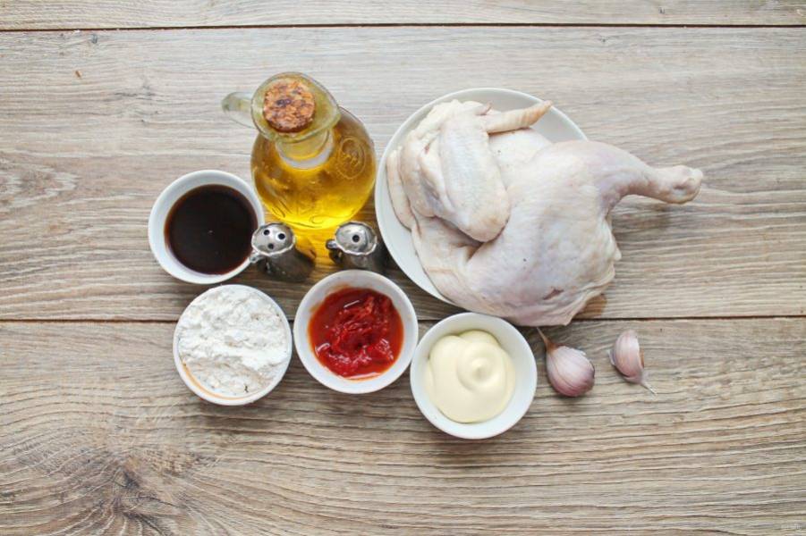 Подготовьте все необходимые ингредиенты для приготовления курицы "Золотистая корочка".