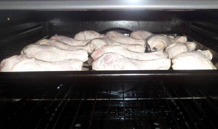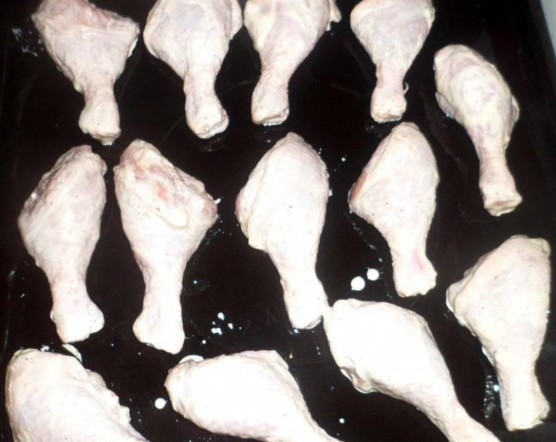 Теперь смазываем противень растительным маслом и выкладываем на него голени.