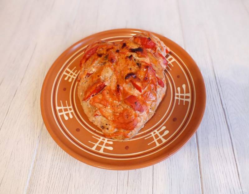 Включите духовку на 180 градусов. Грудку обмажьте обильно подготовленным сметанно-томатным соусом. Поставьте форму в духовку на 45 минут.
