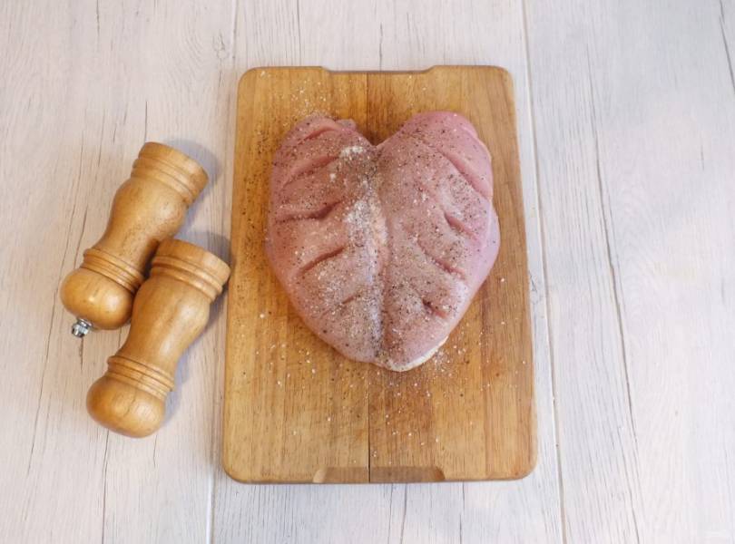 Натрите грудку солью и перцем.