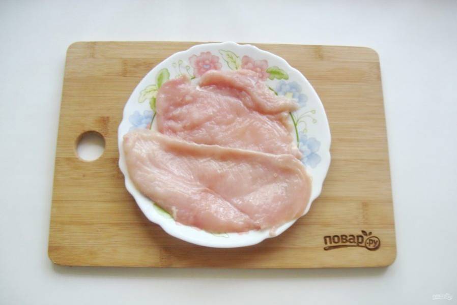 Филе помойте, обсушите и нарежьте пластами. Отбивать не нужно.