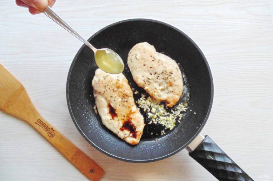 Обжаривайте грудки с обеих сторон до полной готовности и загустения соуса еще 3-4 минуты.