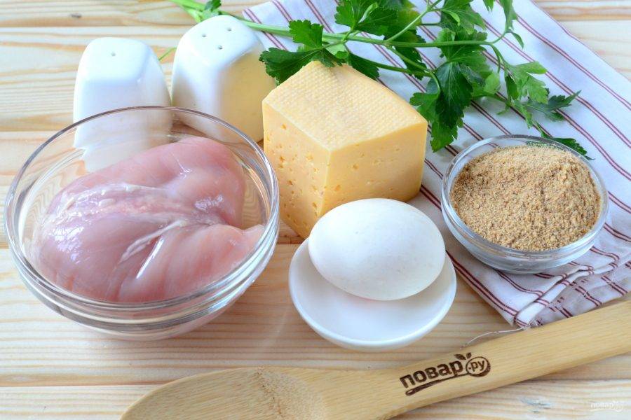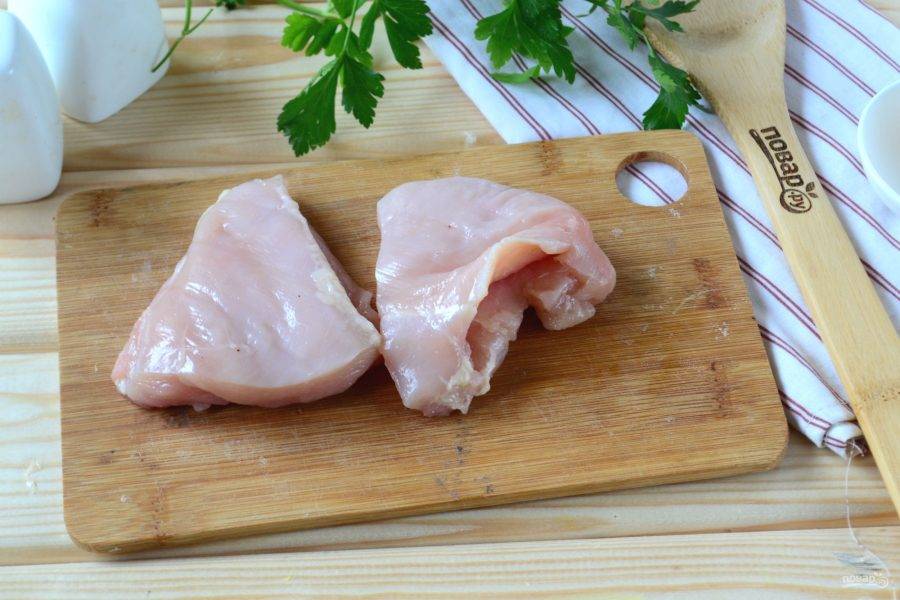 Подготовьте все необходимые ингредиенты. Куриную грудку промойте и обсушите бумажными полотенцами.